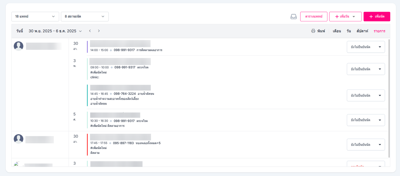 ผู้ใช้งานสามารถกรองรูปแบบสถานะนัดได้โดยการเลือก