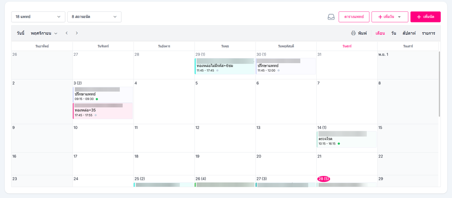 ผู้ใช้งานสามารถดูตารางการนัดหมายของในส่วนที่เหลือได้เช่นกัน โดยระบบจะทำการแสดงการนัดหมายของเดือนปัจจุบัน