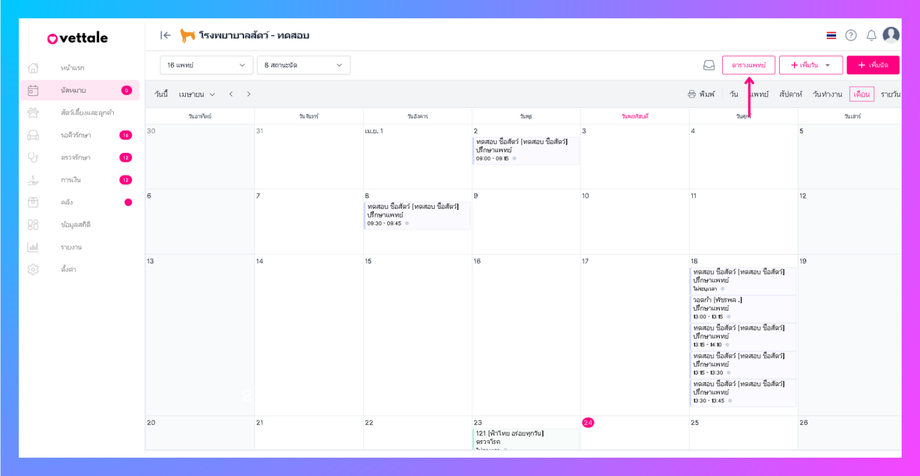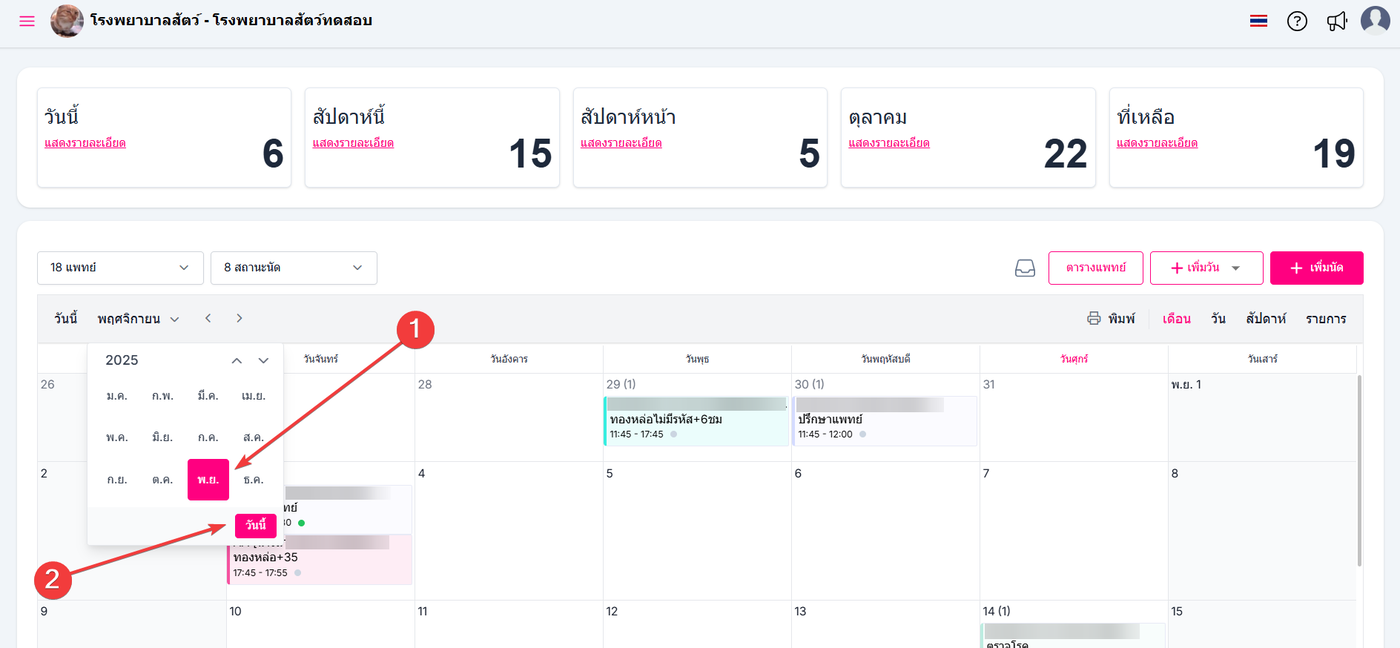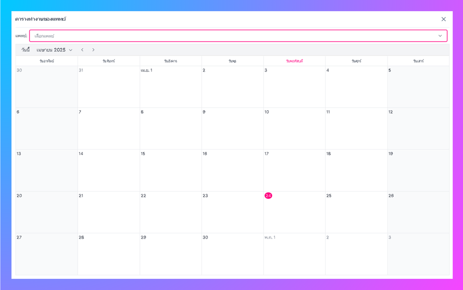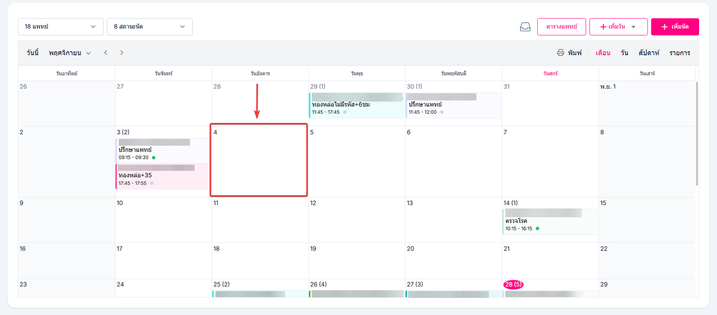 เลือกวันที่ต้องการดูรายการนัดหมายของแพทย์