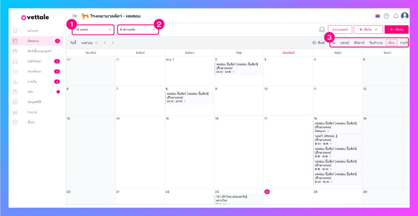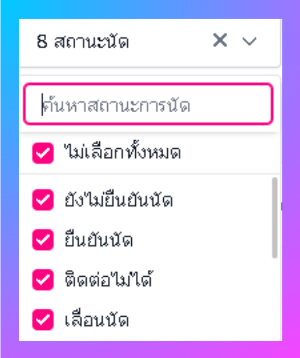 ผู้ใช้งานสามารถกรองรูปแบบสถานะนัดได้โดยการ