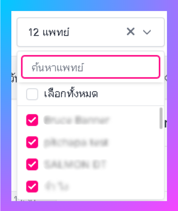 1.กรองการแสดงผลจากรายชื่อแพทย์