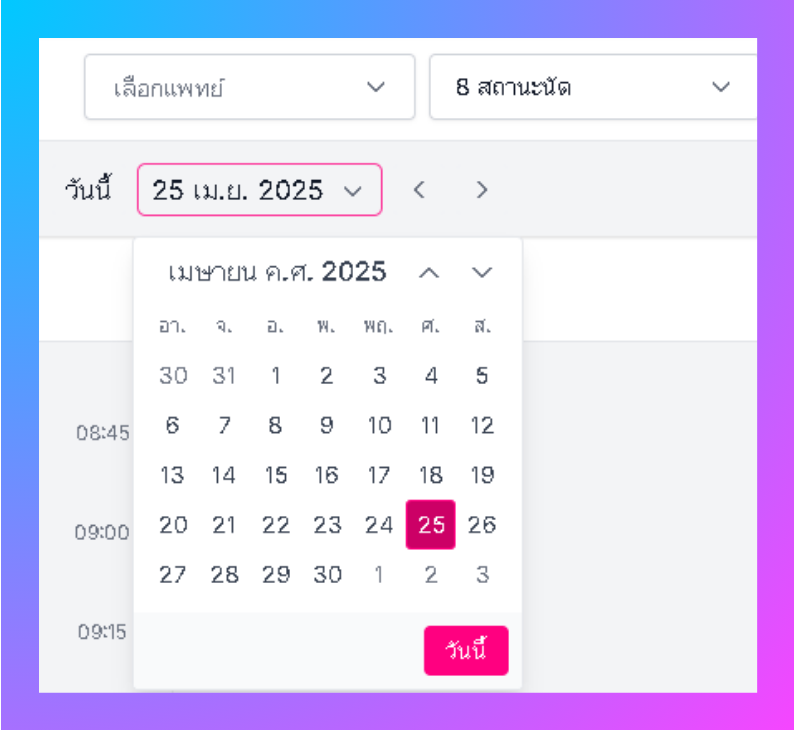 - เลือกวันที่ต้องการดูรายการนัดหมายของแพทย์