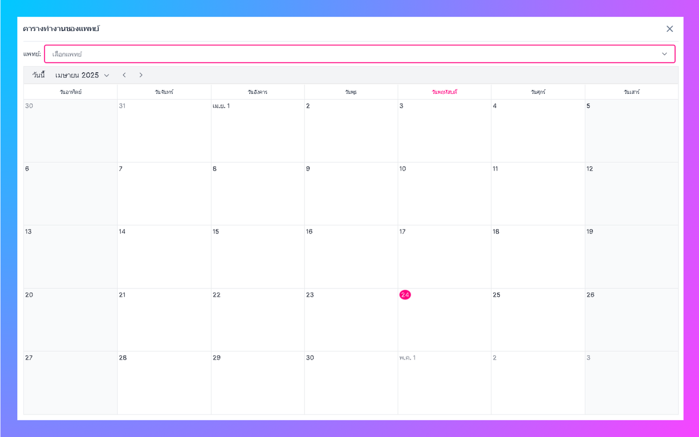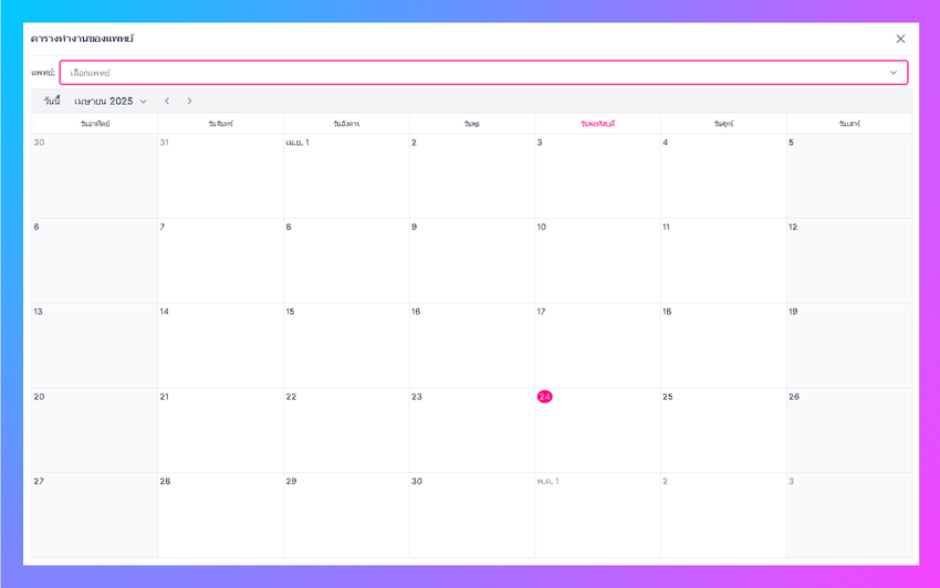- เลือกแพทย์ที่ต้องการดูว่าแพทย์มีนัดหมายหรือเปล่า