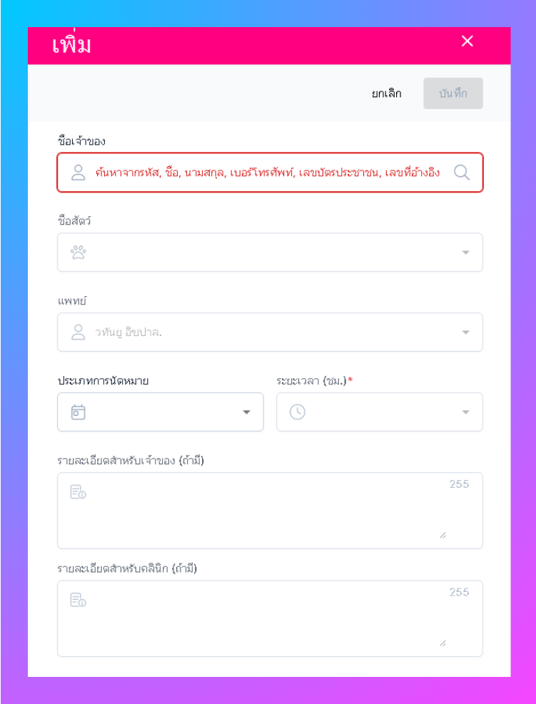สามารถเพิ่มข้อมูลการนัดหมายได้