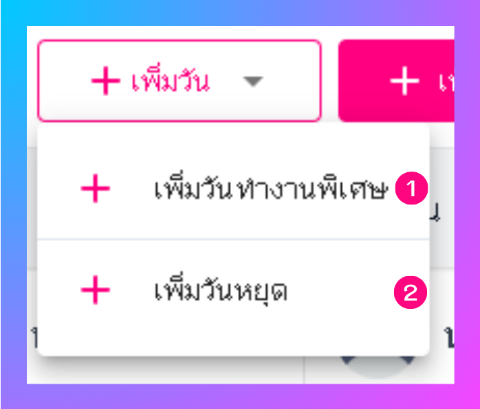 ผู้ใช้สามารถเลือกเพิ่มวันหยุดและวันทำงานพิเศษได้โดยคลิกที่ เพิ่มวัน