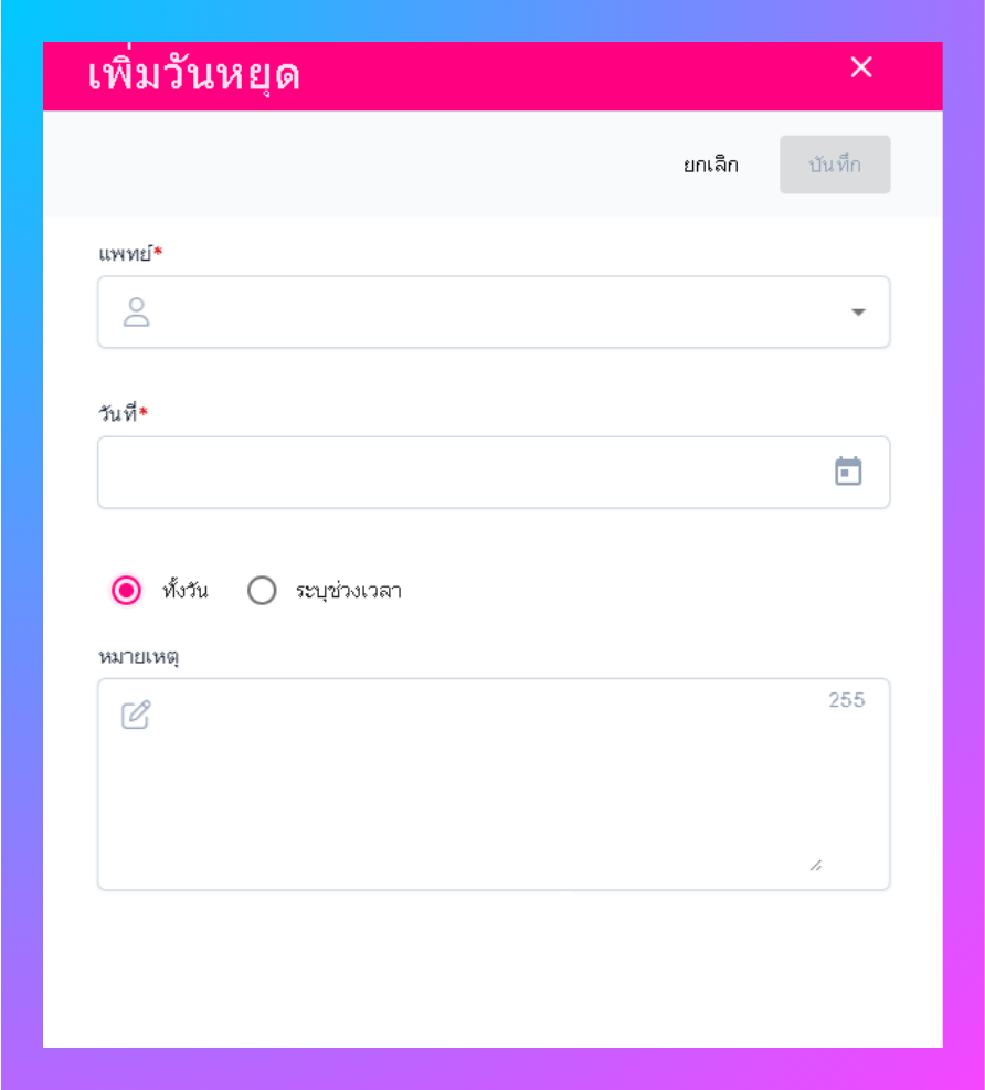 เมื่อผู้ใช้เข้าสู่หน้าเพิ่มวันหยุดสามารถใส่ข้อมูลได้ดังนี้