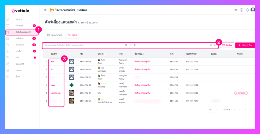 - เลือกเมนูสัตว์เลี้ยงและลูกค้า