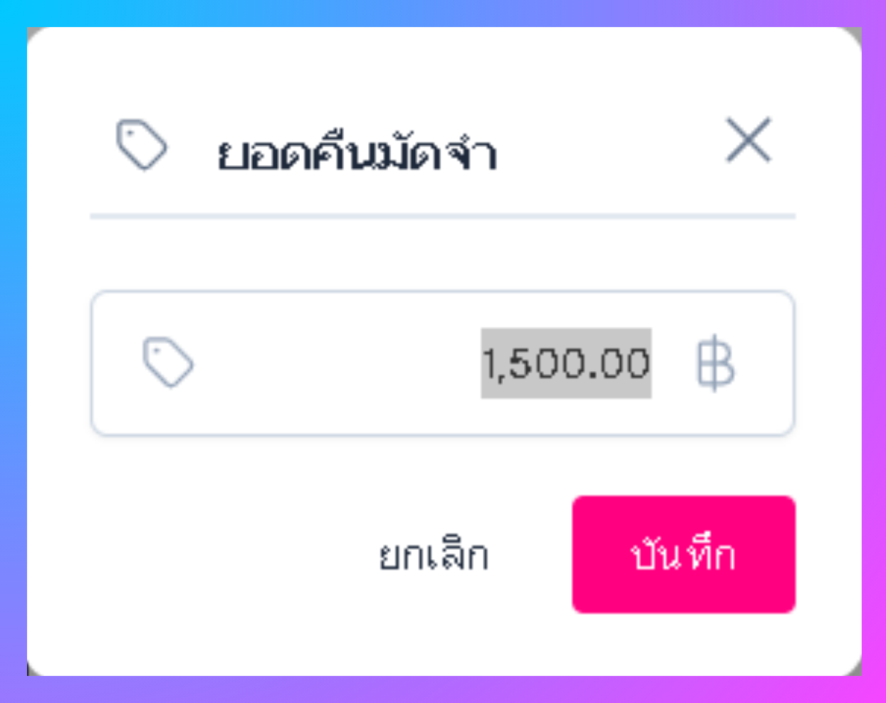 - ระบบจะแสดงการรับมัดจำและการคืนมัดจำ
