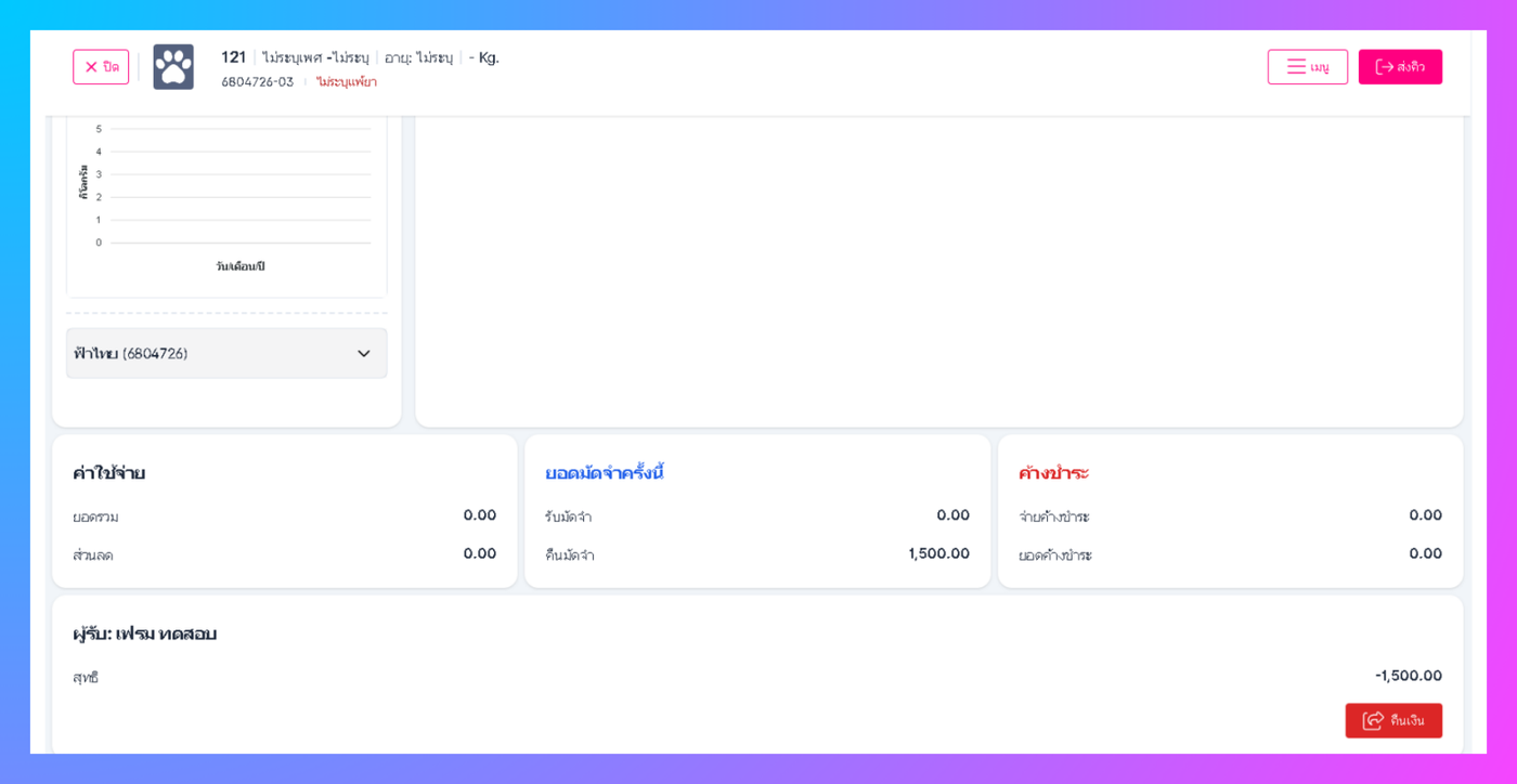 - ผู้ใช้งานเลือกชื่อสัตวฺที่ต้องการคืนมัดจำ