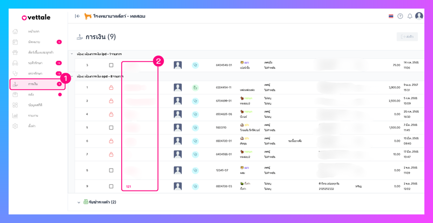 - ระบบจะเข้าสู่หน้ารายการห้องการเงิน
