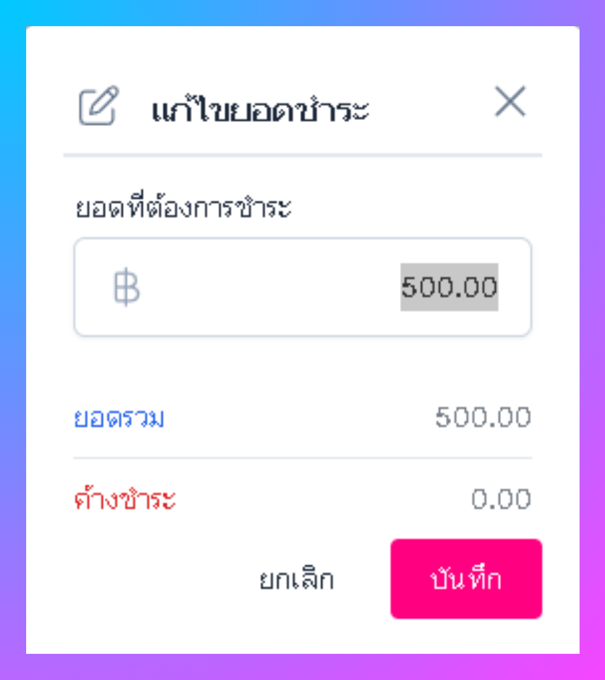ระบบจะแสดงหน้าต่างเพื่อให้ผู้ใช้งานกรอกยอดค้างชำระตามจำนวน