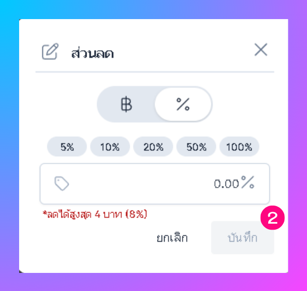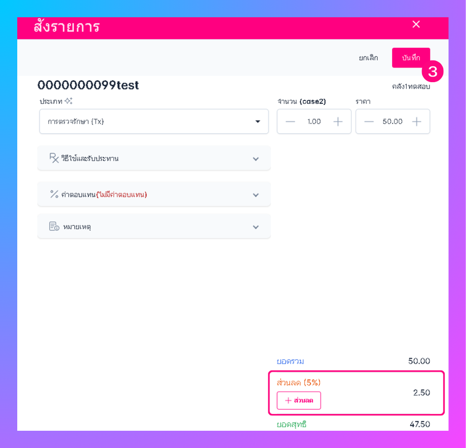 - สามารถเพิ่มส่วนลดได้สูงสุดตามสิทธิ์ของผู้ใช้งานเท่านั้น