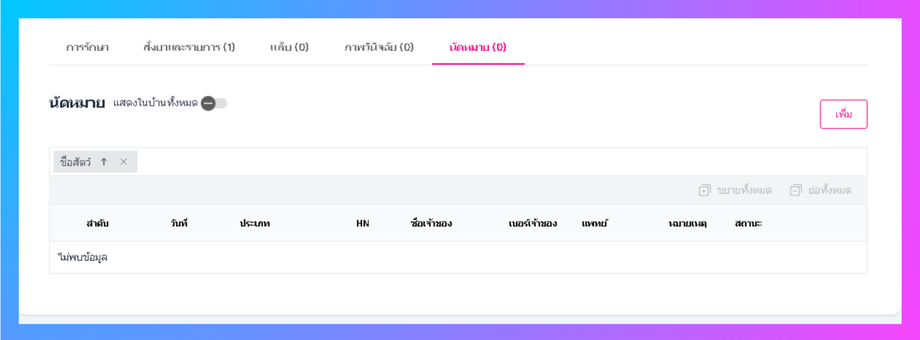 ผู้ใช้งานสามารถเพิ่มการนัดหมาย และดูประวัติการนัดหมายได้
