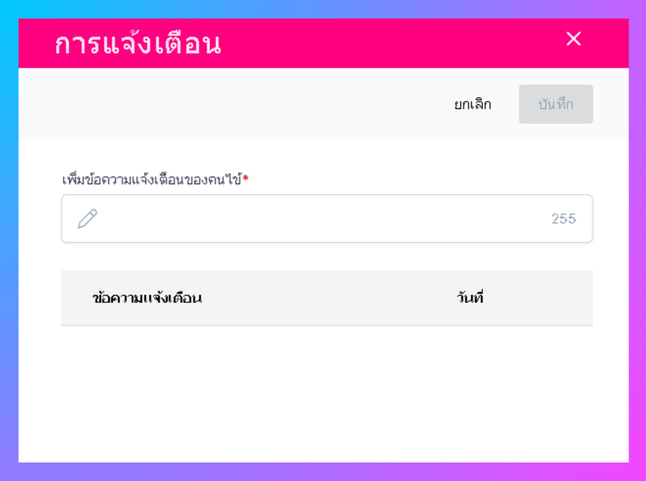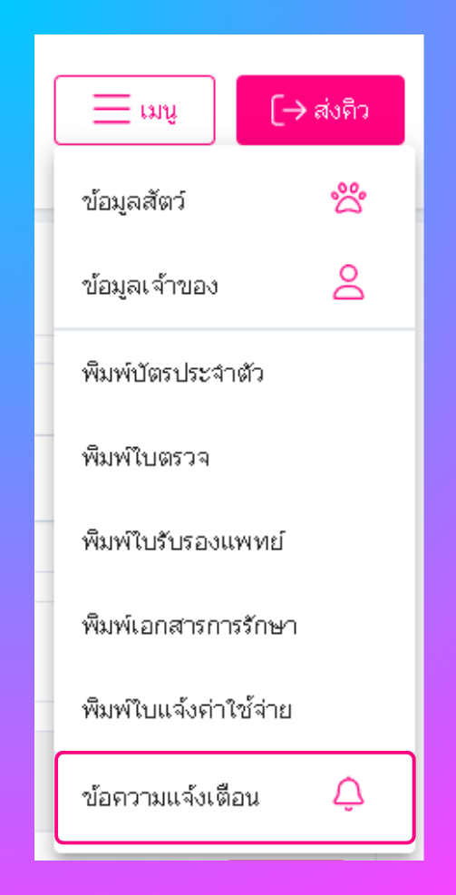 ผู้ใช้งานสามารถเพิ่มแจ้งเตือนได้โดยคลิกเมนู > ข้อความแจ้งเตือน