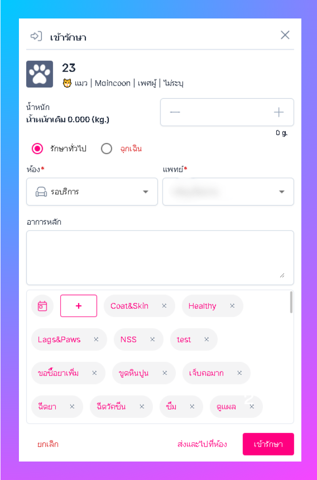 • เมื่อเสร็จแล้วคลิก "ส่งและไปที่ห้อง" หรือ "เข้ารักษา"