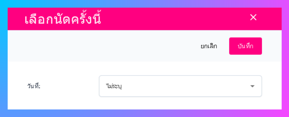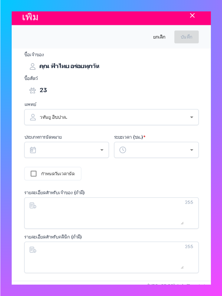 • ผู้ใช้งานสามารถนัดหมายล่วงหน้าโดยการกรอกข้อมูลวันเวลา ใส่รายละเอียดเพิ่มเติมได้