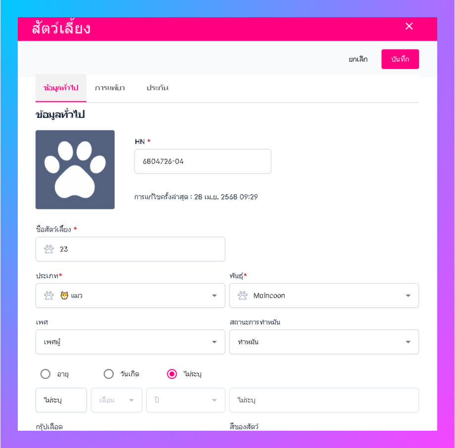 1. แก้ไขข้อมูลสัตว์เลี้ยง
