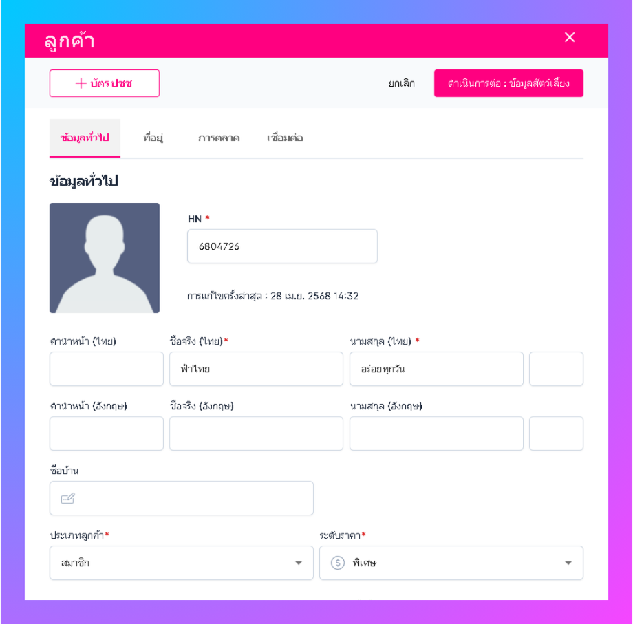 • ไปที่เมนูสัตว์เลี้ยงและลูกค้า