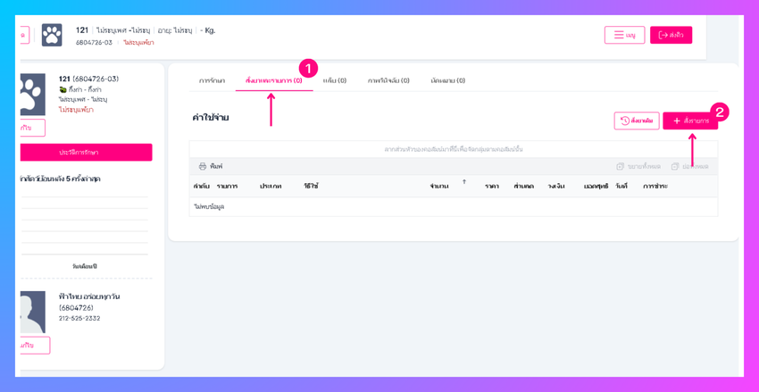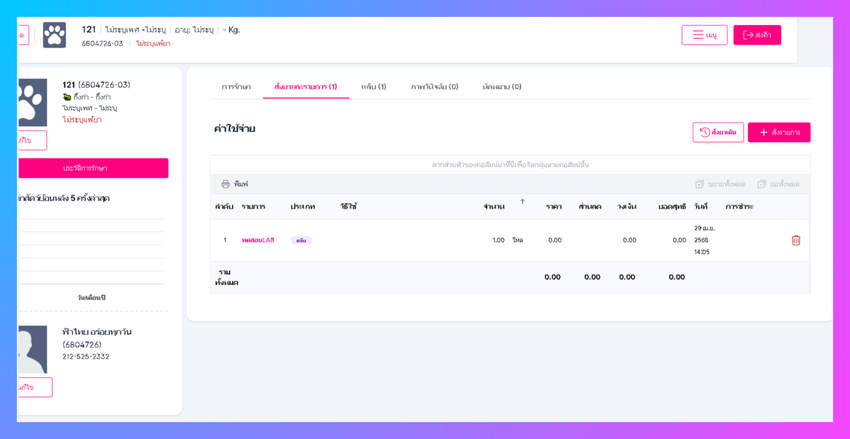 เมื่อทำการคลิกสั่งรายการระบบจะแสดงรายการแล็บที่ผู้ใช้งานสั่ง