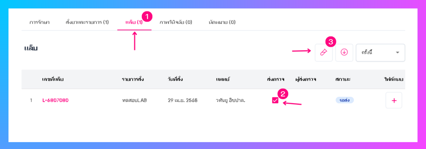 - คลิกที่แล็บ เพื่อเลือกส่งผลแล็บ