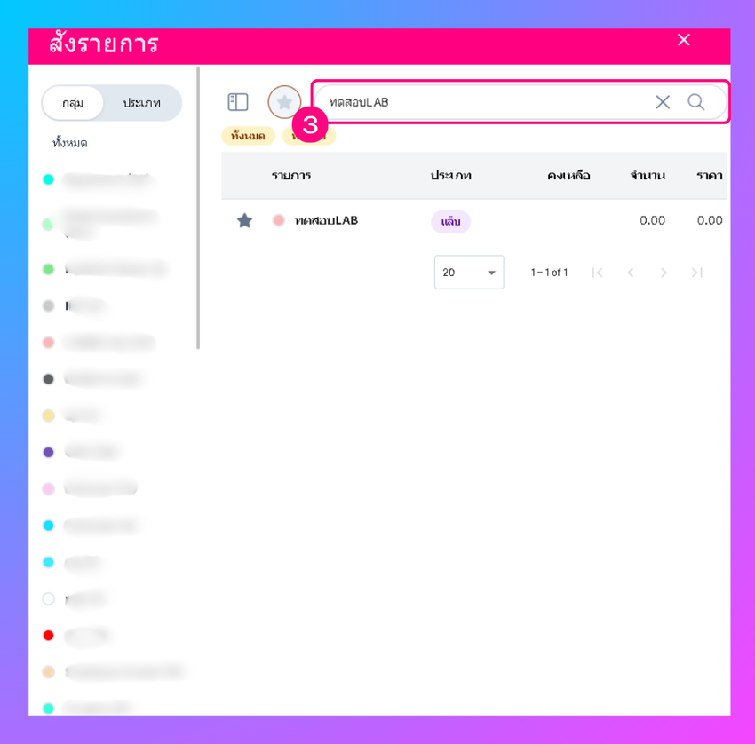 - ค้นหารายการแล็บที่ต้องการสั่ง
