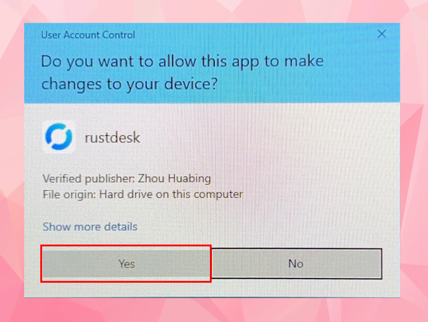 • คลิก "Yes" ที่หน้าต่าง User Account Control