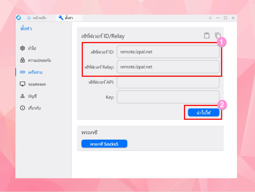 1. ตั้งค่า เซิร์ฟเวอร์ ID และ เซิร์ฟเวอร์ Reply เป็น " remote.izpal.net "