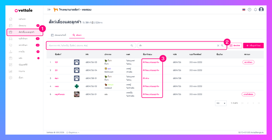 กำหนดการกรอกเลขรหัสเจ้าของโดยตรง ผู้ใช้งานสามารถแก้ไขเลขรหัสเจ้าของได้โดย คลิกเมนูสัตว์เลี้ยงและลูกค้า ค้นหาชื่อเจ้าของ คลิกชื่อเจ้าของสัตว์เลี้ยง คลิกแก้ไข ผู้ใช้งานสามารถแก้ไขรหัสเจ้าของสัตว์เลี้ยงได้ จากนั้นกด ดำเนินการต่อ:ข้อมูลสัตว์เลี้ยง
