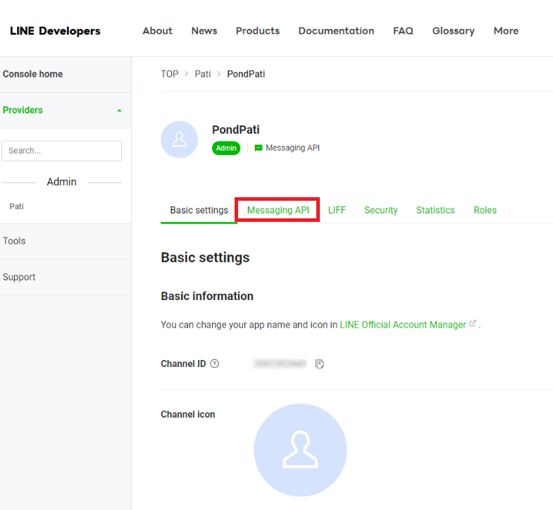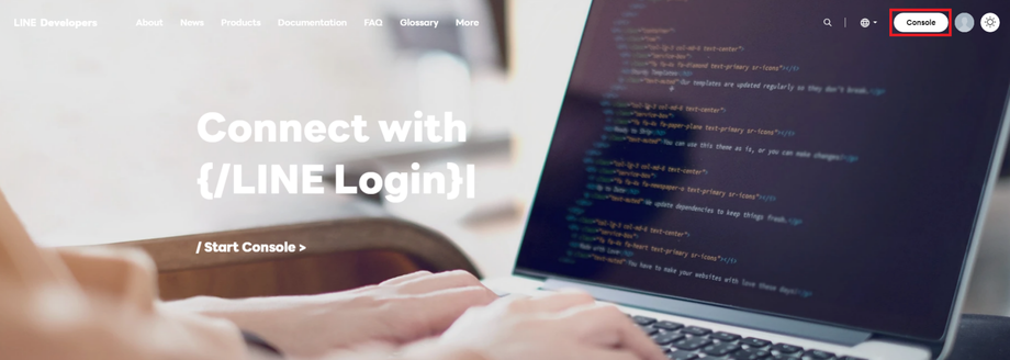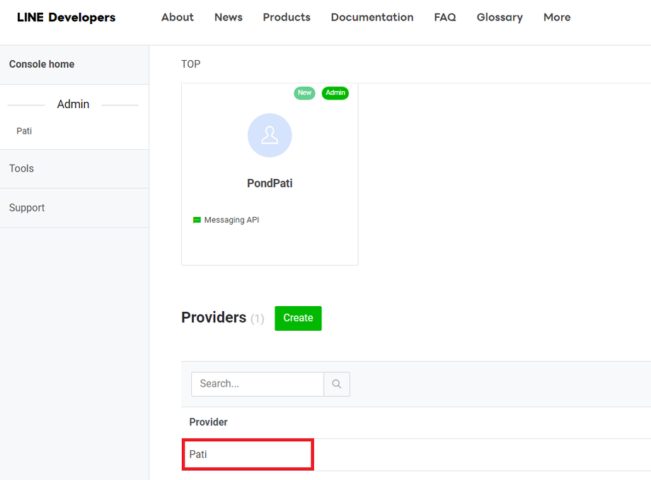 ผู้ใช้งานจะเข้าสู่หน้าเว็บของ Line Developers จากคลิก Console ที่มุมขวาบน