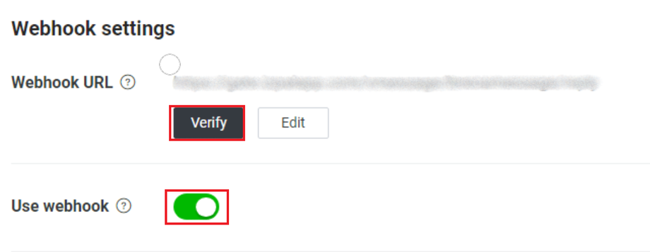 จากนั้นเลื่อนลงหาหัวข้อ Webhook setting ทำการคลิก Verify และ เปิกใช้ Use Webhook