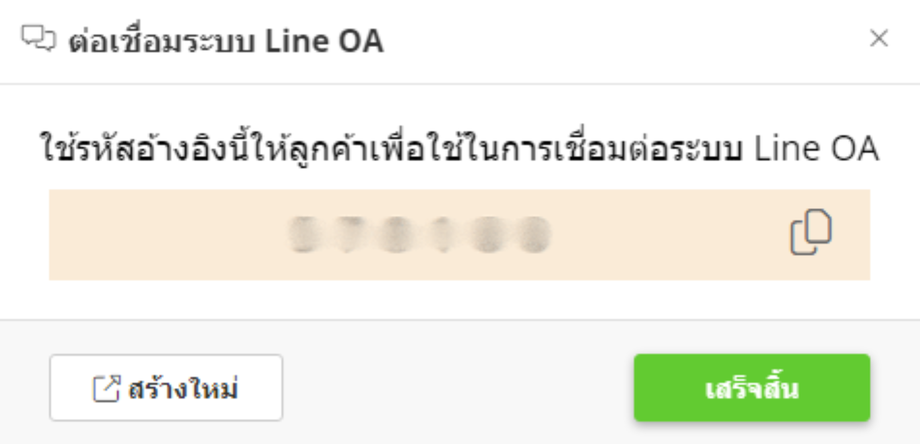 ให้ผู้ใช้งานไปรับรหัสที่ ข้อมูลเจ้าของที่จะทำการสมัคร Line OA และเลื่อนลงมาล่างสุดเลือก เชื่อมต่อระบบ Line OA ระบบจะแสดงรหัส 6 หลักและนำให้ลูกค้า