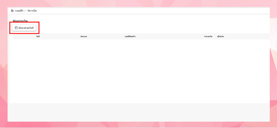 • ระบบจะเข้าสู่หน้า จัดการบิล สามารถทราบบิลได้โดยการคลิกปุ่ม ค้นหาตามวันที่