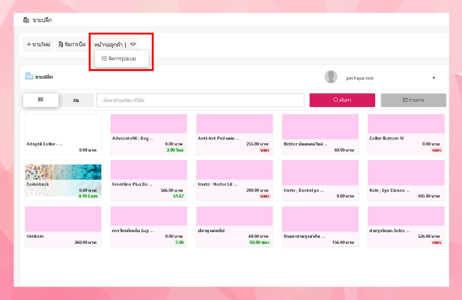 • เมื่อผู้ใช้งานเข้าสู่หน้าขายปลีก ให้ผู้ใช้งานคลิก สัญลักษณ์สามเหลี่ยม และคลิกจัดการรูปแบบ