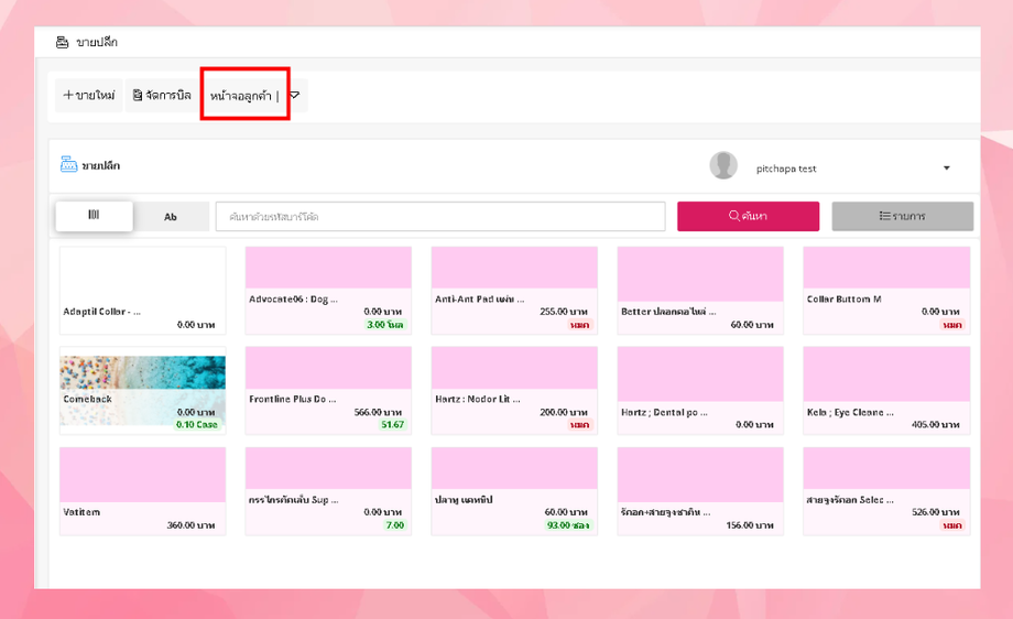 • ระบบจะแสดงหน้าต่างจอลูกค้า
