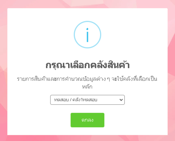 ระบบจะแสดงหน้าต่างเพื่อให้ผู้ใช้งานเลือกคลังสินค้า