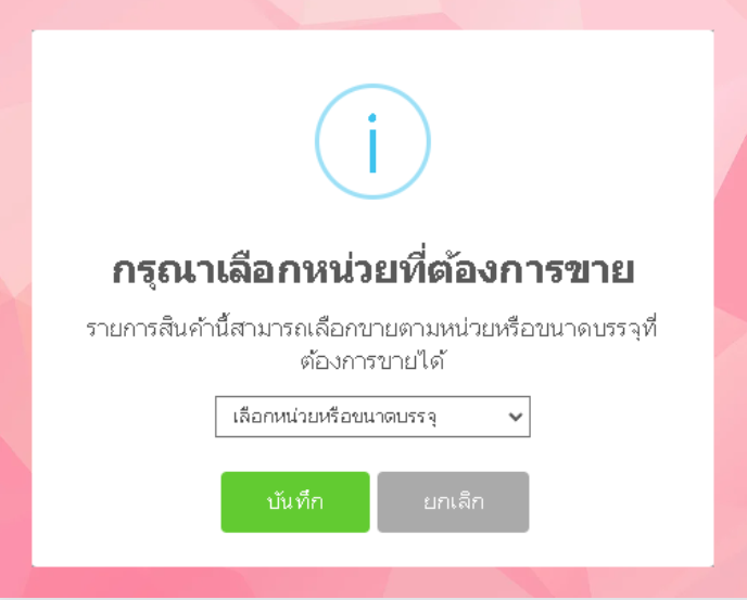 • เมื่อเลือกสินค้าแล้ว ระบบจะแสดงหน้าต่างให้ผู้ใช้งานเลือกหน่วยที่ต้องการขาย