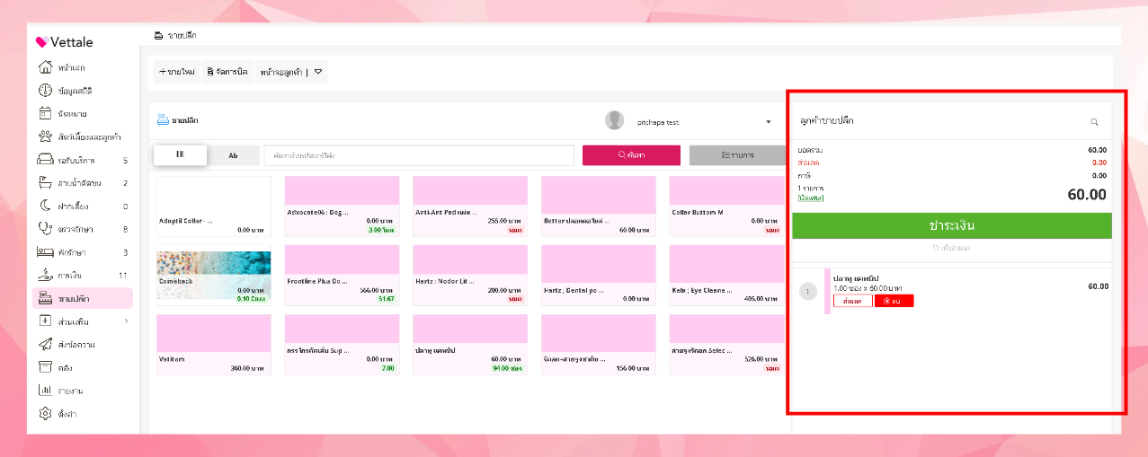 - เมื่อผู้ใช้งาน เลือกรายการที่ต้องการขายครบแล้ว คลิกชำระเงิน