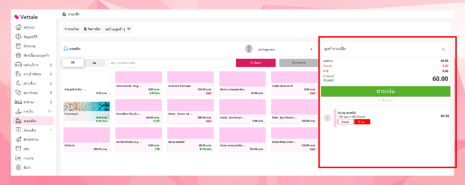 • เมื่อผู้ใช้งาน เลือกรายการที่ต้องการขายครบแล้ว คลิกชำระเงิน