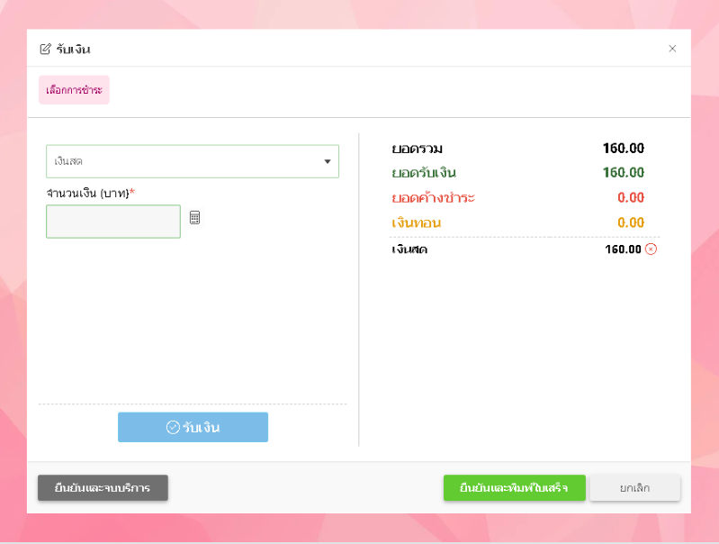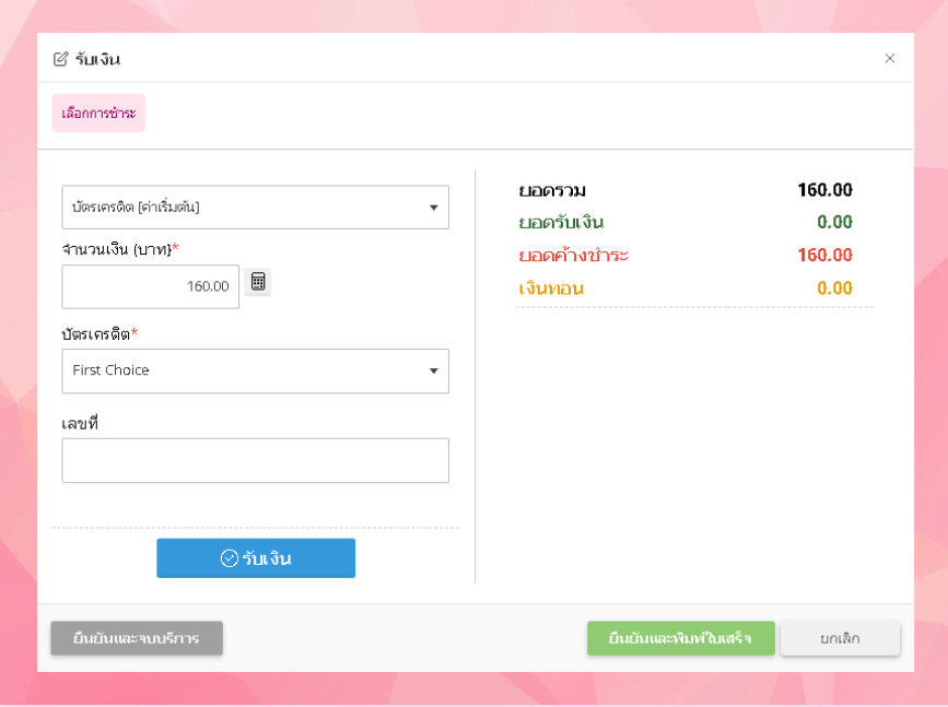 • ระบบจะแสดงหน้าต่างรับเงิน ผู้ใช้งานสามารถเลือกรูบแบบการรับเงินได้