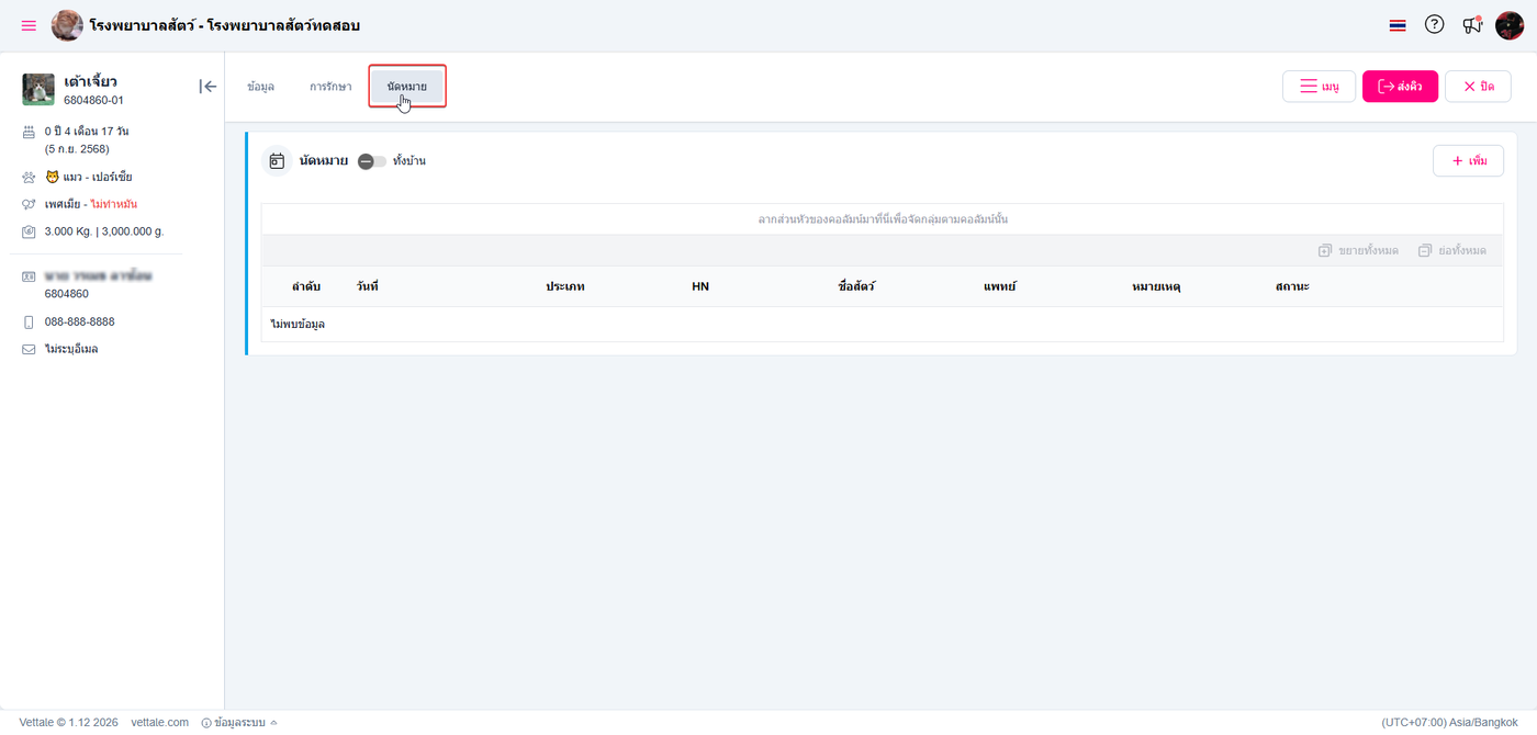 แถบนัดหมาย : ผู้ใช้งานสามารถเพิ่มนัดหมายให้สัตว์เลี้ยงในแถบนี้ได้
