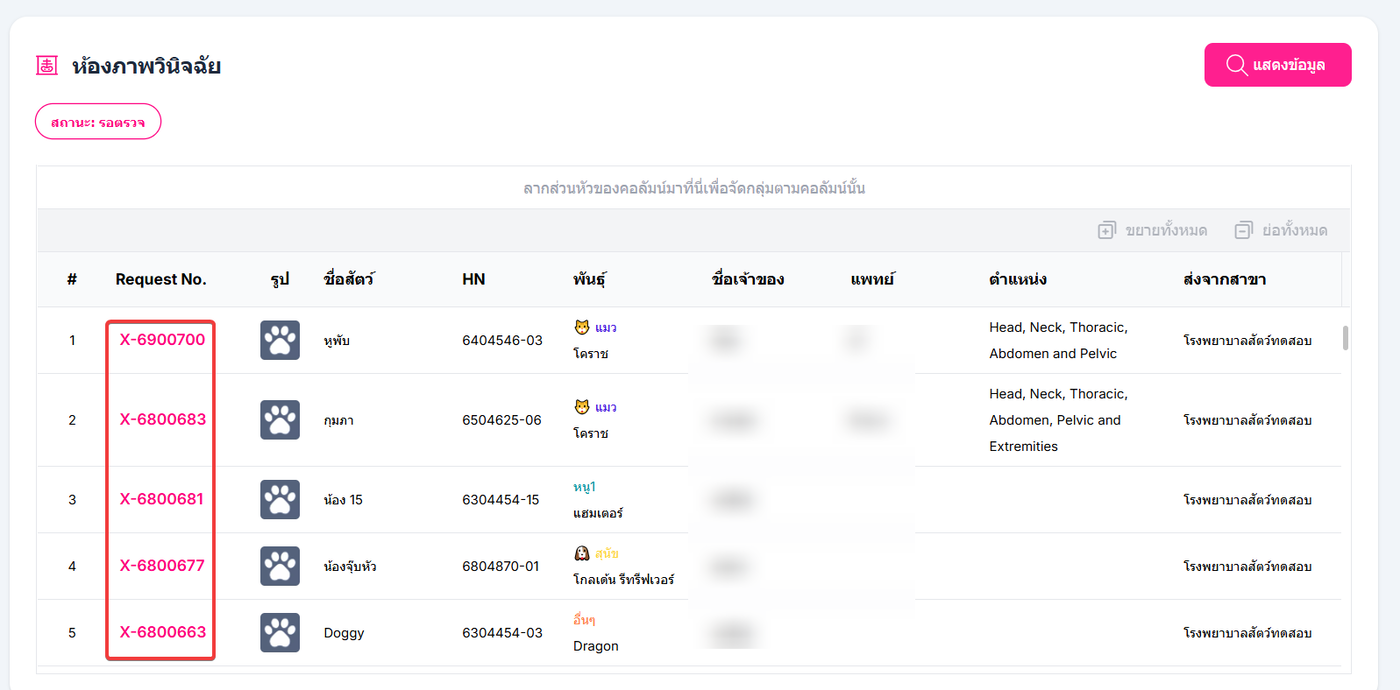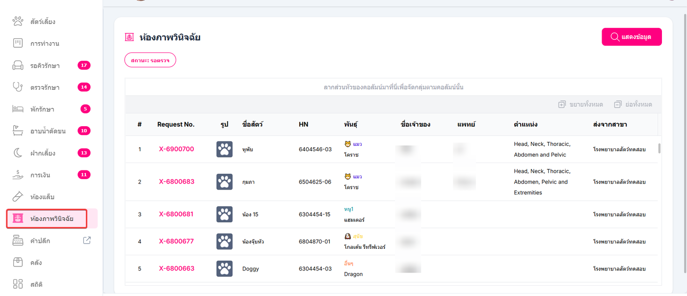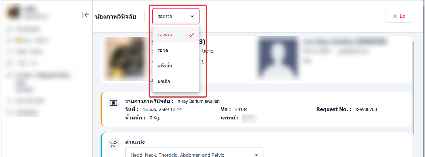 ระบบจะแสดงหน้าห้องภาพวินิจฉัย และรายการที่ถูกส่งมาให้ตรวจ ระบบจะแสดงเป็นสถานะรอตรวจ