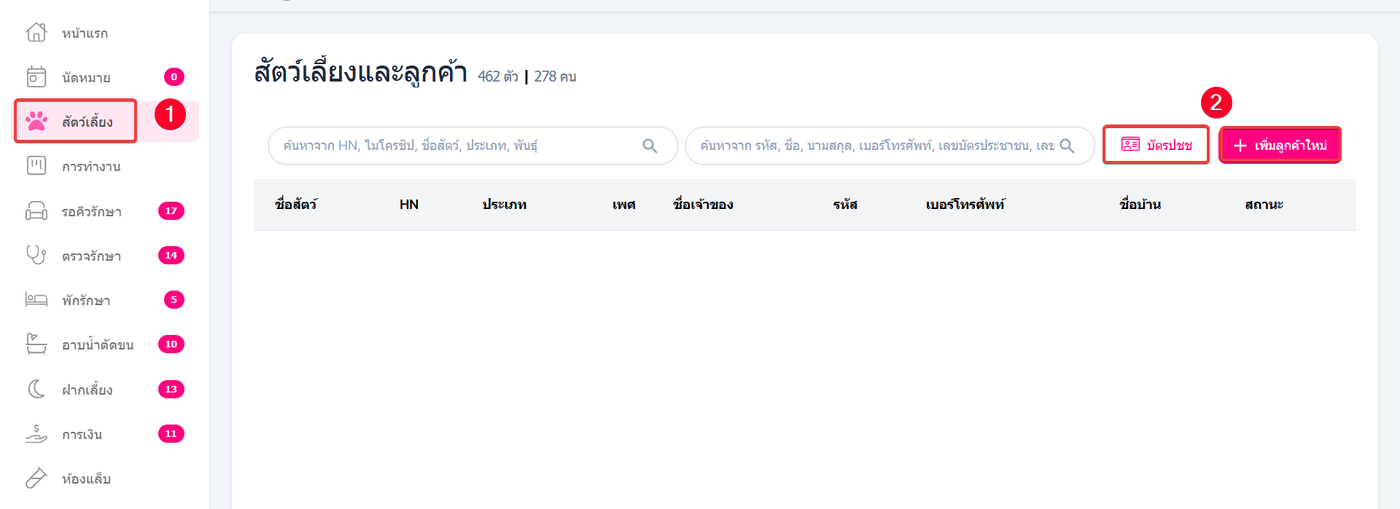 เพิ่มสัตว์เลี้ยงและลูกค้า มีขั้นตอนดังต่อไปนี้