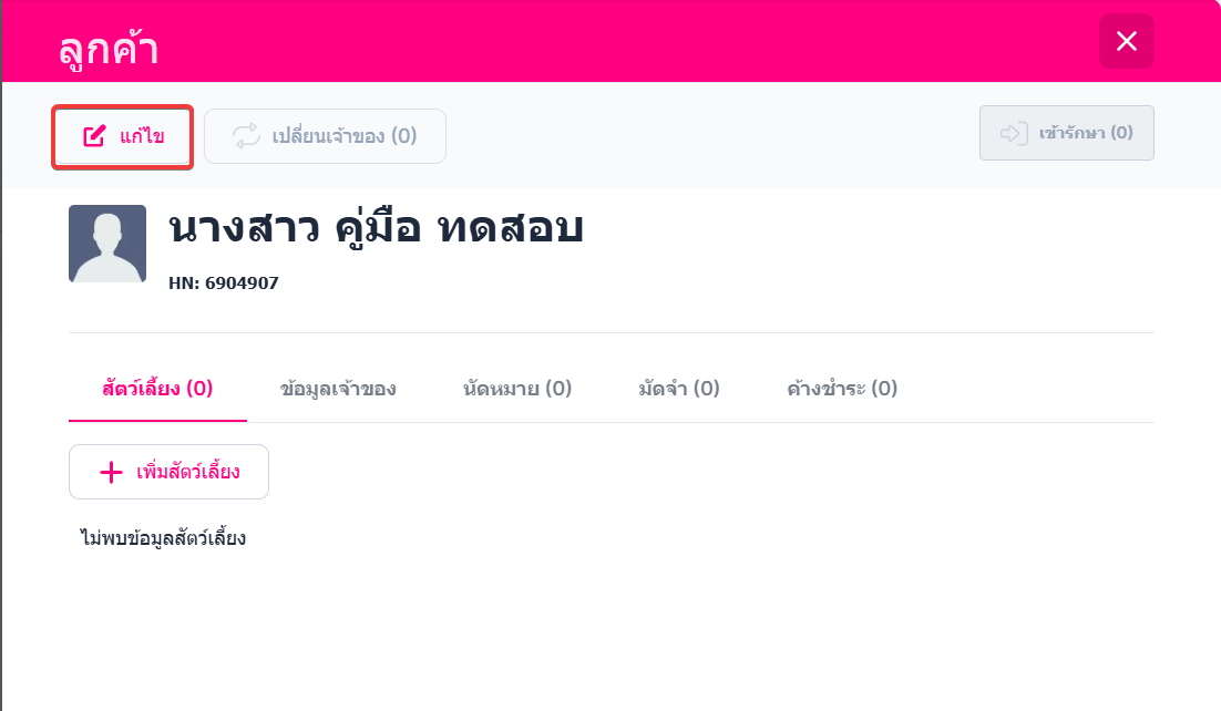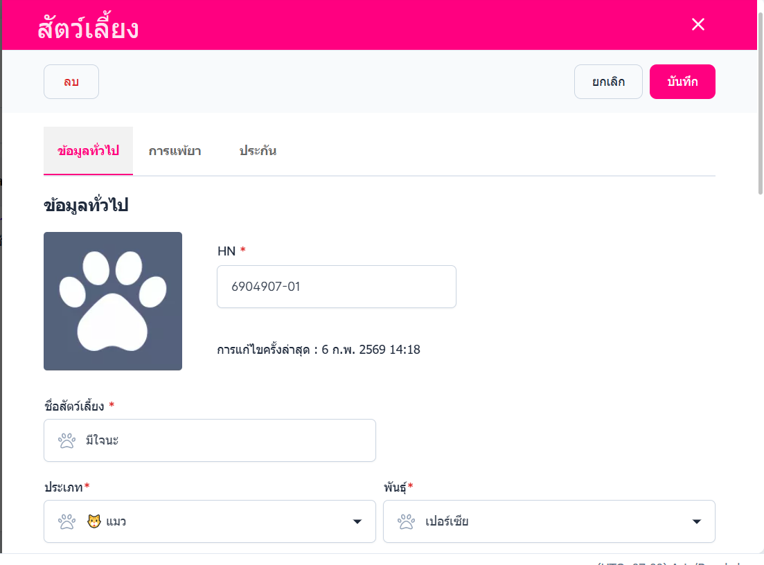 แก้ไขข้อมูลสัตว์เลี้ยง