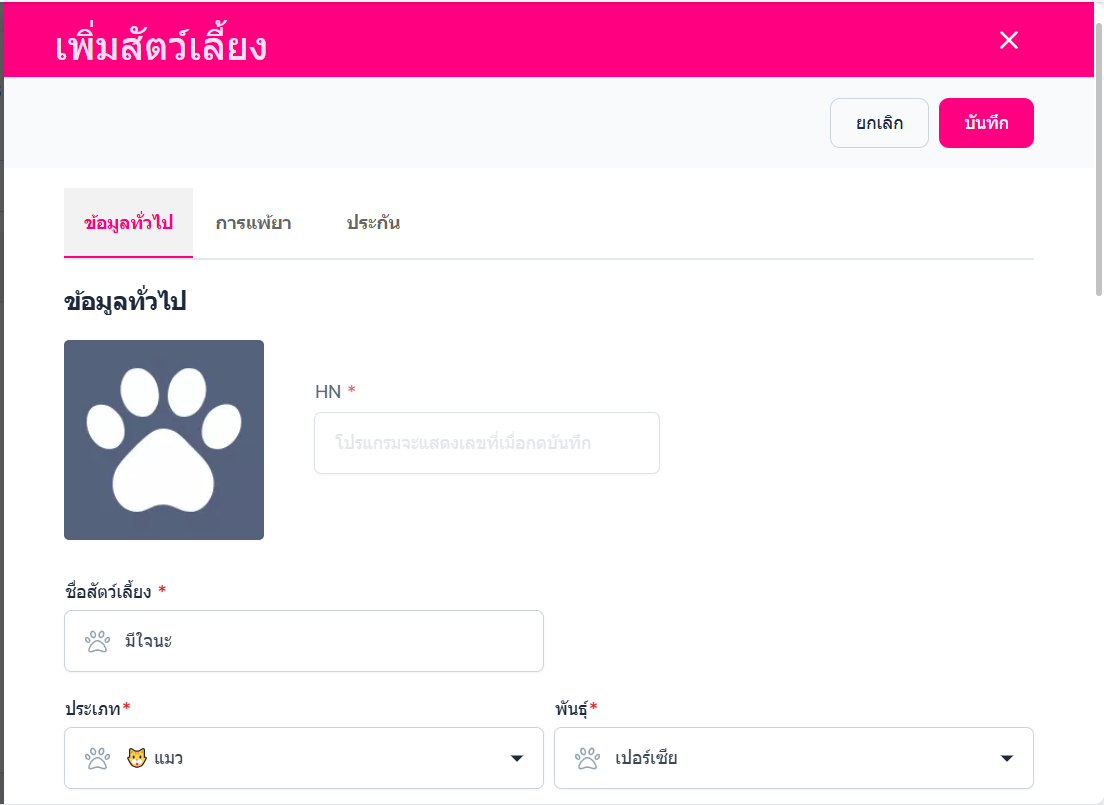 เพิ่มข้อมูลสัตว์เลี้ยง