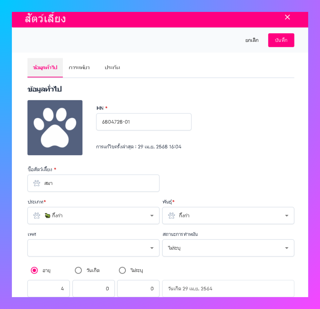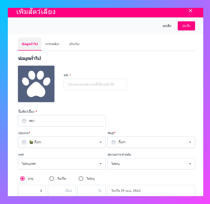 การเพิ่มข้อมูลสัตว์เลี้ยง