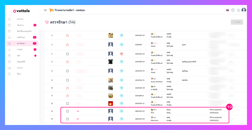 - คลิกที่ชื่อเจ้าของสัตว์ที่ต้องการ