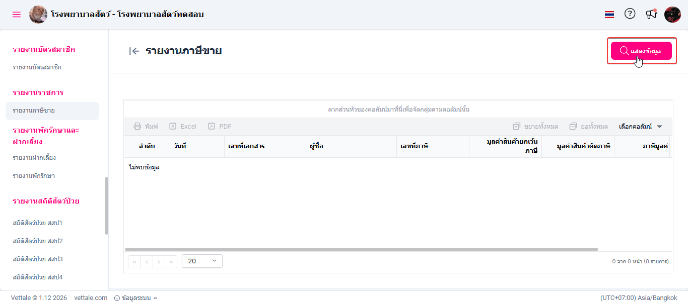 • เมื่อผู้ใช้งานเข้าสู่หน้ารายงานคลิกปุ่ม "แสดงข้อมูล"