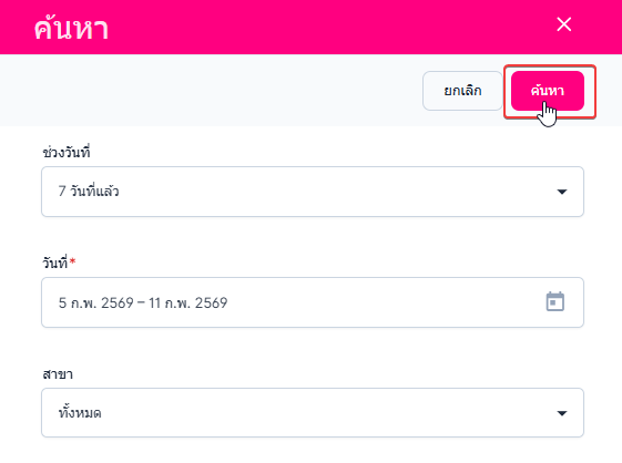 • ช่วงวันที่ ผู้ใช้งานเลือกช่วงวันที่ หรือ กำหนดวันที่เอง