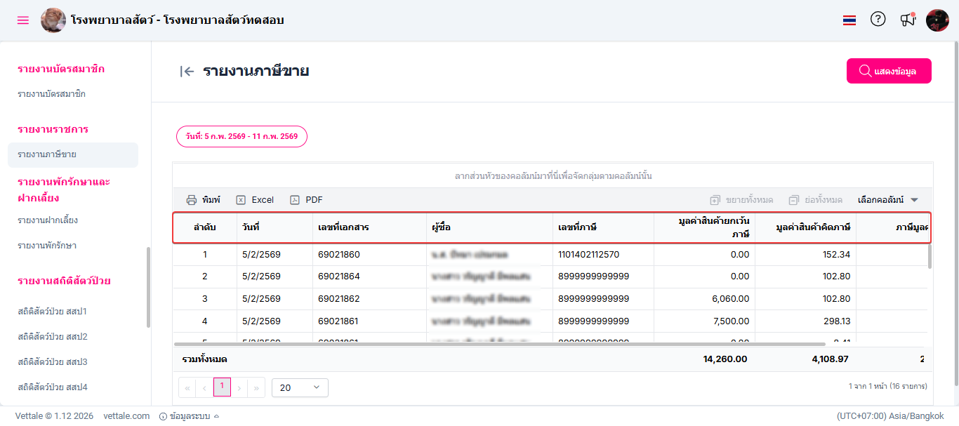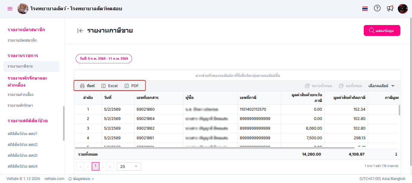 รายงานรวมข้อมูลของแต่ละรายการภาษีขายทั้งหมดในระยะเวลาที่กำหนด และแสดงรายละเอียดที่เป็นประโยชน์เกี่ยวกับแต่ละรายการ, ผู้ซื้อ, และมูลค่าที่ไม่คิดภาษี, มูลค่าสินค้าก่อนภาษี, ภาษีมูลค่าเพิ่ม
