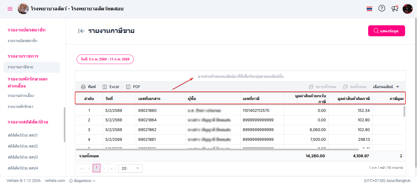 • ผู้ใช้งานสามารถลากส่วนหัวของคอลัมน์เพื่อจัดตามกลุ่มของคอลัมน์ได้